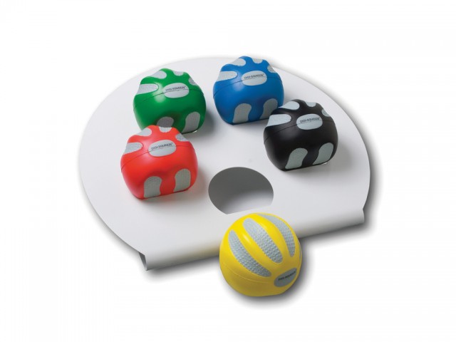 Voor de opbouw van de spiercoördinatie van hand en onderarm. Individuele kracht- en spierversterking van de afzonderlijke vingers. Vijf sterkten . •Geel 0,7 kg •rood 1,4 kg •Groen 2,3 kg •Blauw 3,2 •Zwart 4,1
